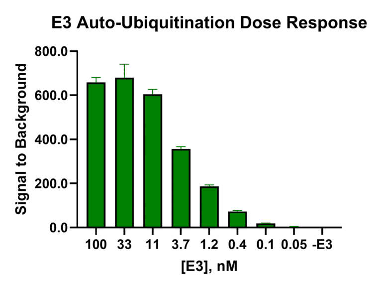These assays are very well validated for over a decade and offer important information regarding ubiquitination, deubiquitinase performance, substrate performance, E3 activity all in response to the introduction of a treatment molecule, PROTAC, molecular glue, or and induced protein stabilizer.Â