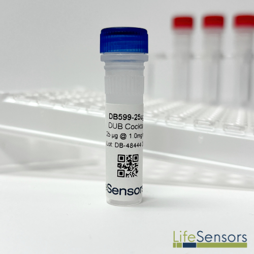 LifeSensors DB599 is a high-purity DUB cocktail optimized for complete deubiquitinase digestion in UbiTest assays, ensuring reliable and efficient protein analysis